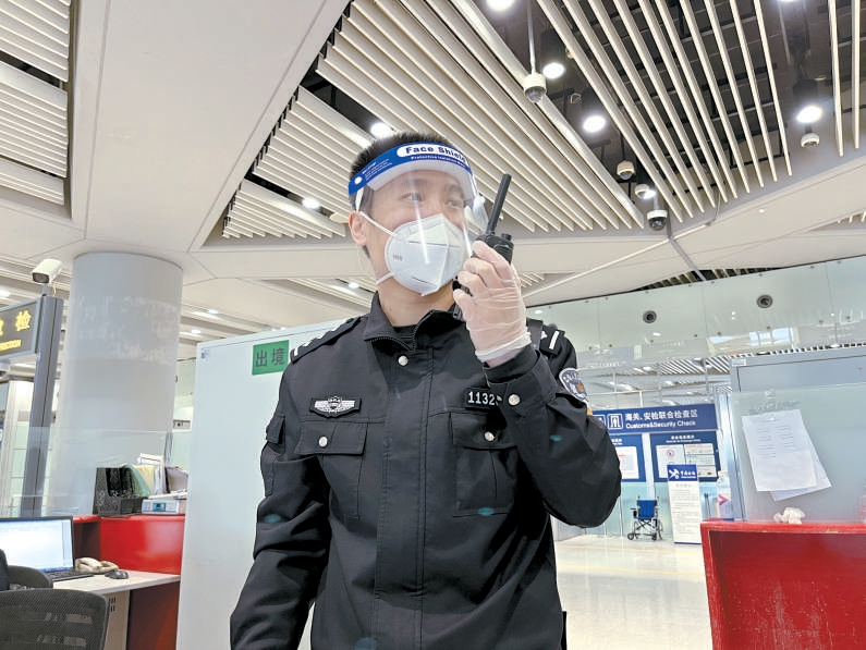 張浩在首都國際機場邊檢出境現場執(zhí)勤。