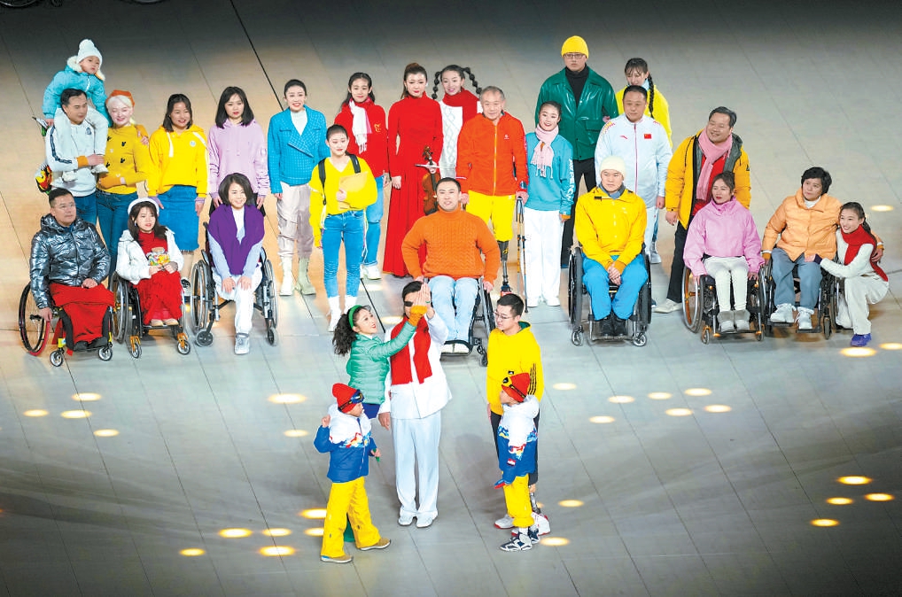 手語(yǔ)“唱”國(guó)歌、殘健融合的《冬殘奧圓舞曲》、展示最小會(huì)徽……北京冬殘奧會(huì)開(kāi)閉幕式給億萬(wàn)觀眾留下很多難忘的瞬間,而這些經(jīng)典場(chǎng)景都由中國(guó)殘疾人特殊藝術(shù)指導(dǎo)中心(中國(guó)殘疾人藝術(shù)團(tuán))帶來(lái),他們也成為北京冬奧會(huì)冬殘奧會(huì)總結(jié)表彰大會(huì)上受到表彰的148個(gè)集體之一?!皻埣踩怂囆g(shù)團(tuán)和奧運(yùn)結(jié)緣很早,但這一次可以帶著這么多殘疾人演員在家門(mén)口唱國(guó)歌、看冬奧會(huì)和冬殘奧會(huì),我們倍感激動(dòng)。”中國(guó)殘疾人藝術(shù)團(tuán)團(tuán)長(zhǎng)邰麗華說(shuō)。