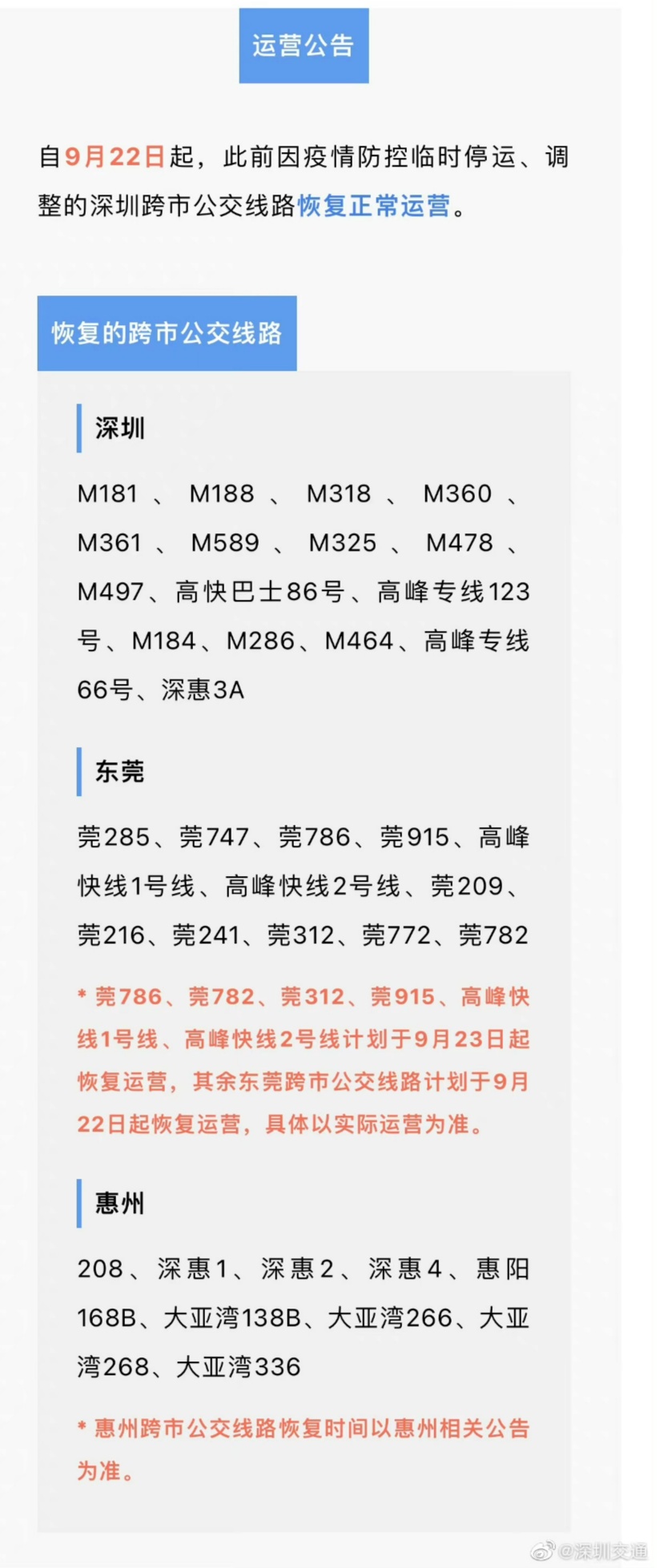 自9月22日起,深圳跨市公交線路恢復(fù)運(yùn)營(yíng)