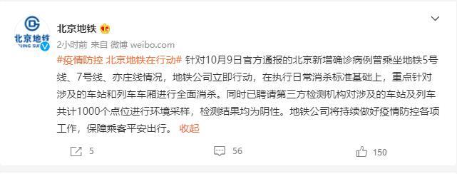 北京地鐵:確診病例軌跡所涉點位檢測結果均為陰性