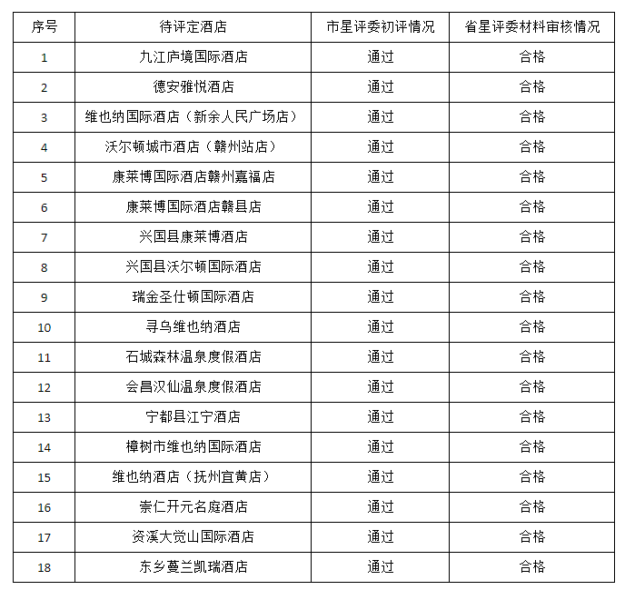 江西省擬評(píng)定十八家酒店為四星級(jí)旅游飯店