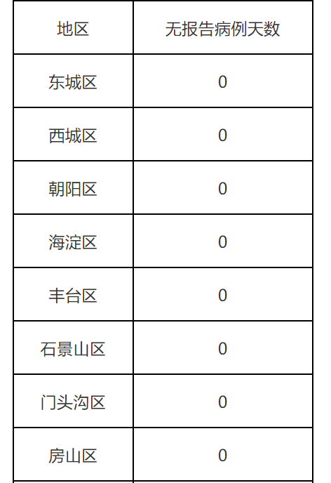 全市16區(qū)和經(jīng)濟(jì)技術(shù)開發(fā)區(qū)無報(bào)告病例天數(shù)情況