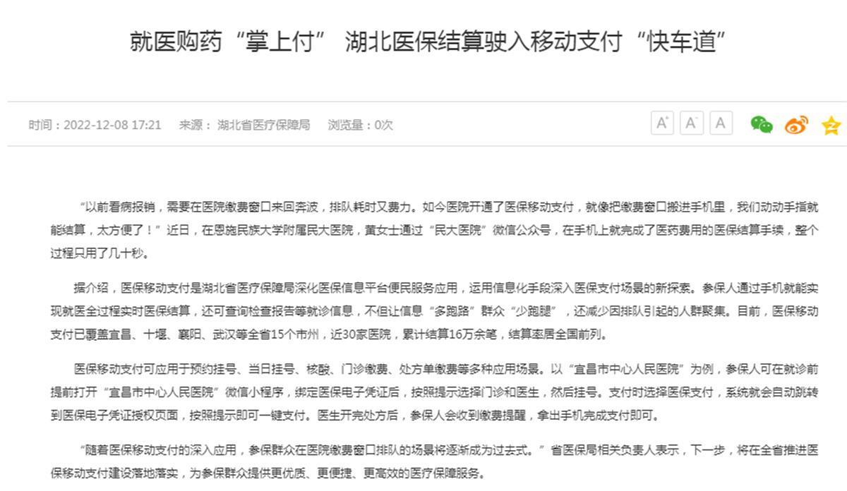 湖北醫(yī)保結算駛入移動支付“快車道”
