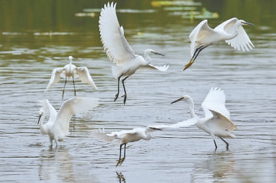 運河森林公園附近的白鷺。本報記者 白繼開攝