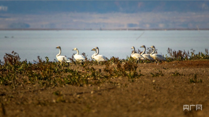 數百只小天鵝自由自在地徜徉于湖畔淺灘(央廣網發(fā) 陳扶南 攝)