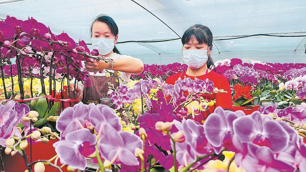 3日,龍巖市永定區(qū)撫市鎮(zhèn)五湖村福仕蝴蝶蘭種植基地,5萬多株蝴蝶蘭迎來了盛放期?;刎撠熑藦埱逑愀嬖V記者,今年的行情非常好,每株蝴蝶蘭最低賣到35元錢,大部分銷售至廣東、閩南一帶。目前,村里還有好幾名勞動力在基地就業(yè)。(記者 張杰 通訊員 熊川 盧傳順)
