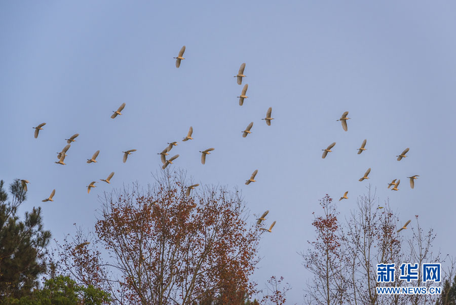 日前,在廣西百色市德??h城關(guān)鎮(zhèn)西讀村那西屯的田野上,成群白鷺或在覓食嬉戲、或在空中飛舞、或在樹梢停歇,與青山、綠水、紅楓構(gòu)成一幅美麗的自然生態(tài)畫卷。