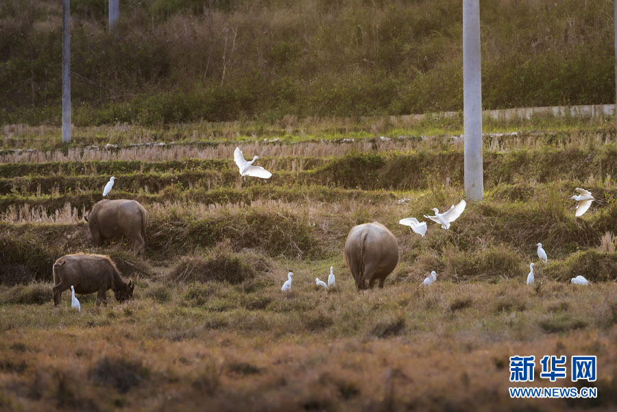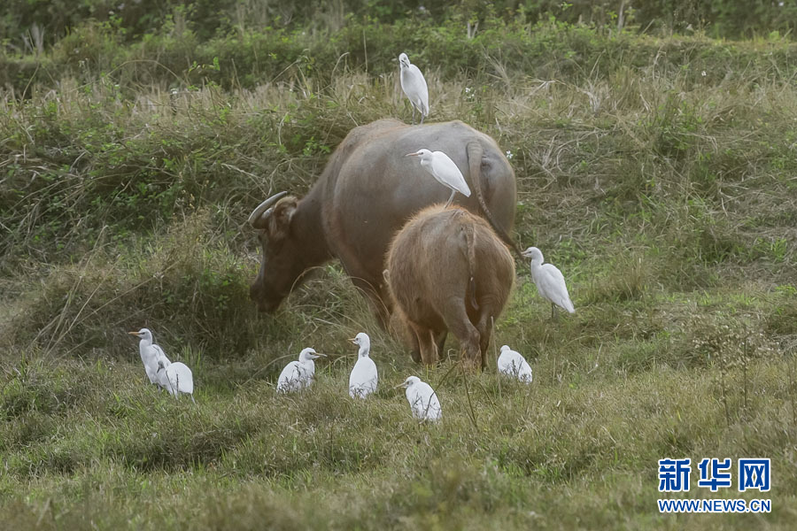 白鷺與水牛。賓綠濤 攝