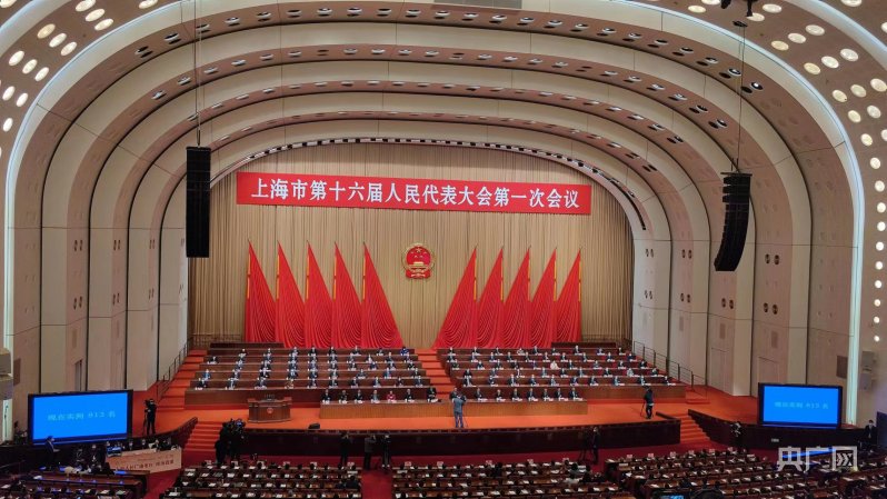 上海市第十六屆人大一次會(huì)議1月11日上午在世博中心開幕(央廣網(wǎng)記者 林馥榆 攝)