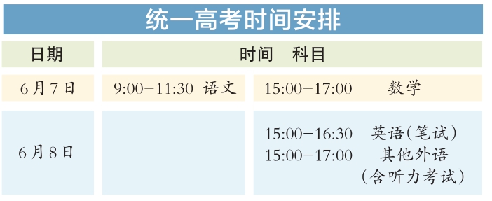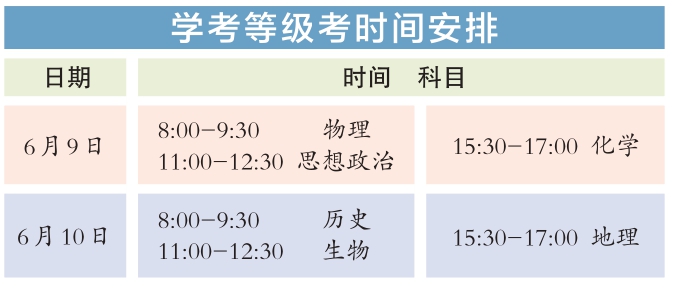今年統(tǒng)一高考考試科目為語文、數(shù)學、外語3門,滿分均為150分。其中,英語聽說考試滿分50分,其他外語(非英語)聽力考試滿分30分,兩次聽說(聽力)考試的最高成績與其他部分試題成績一同組成外語科目成績計入高考總分。學考等級考科目為思想政治、歷史、地理、物理、化學、生物6門,由考生自主選擇3門參加考試,每科目滿分100分。參加本科招生錄取的考生總成績由3門統(tǒng)一高考成績和考生選考的3門學考等級考成績構(gòu)成,總成績滿分值為750分。