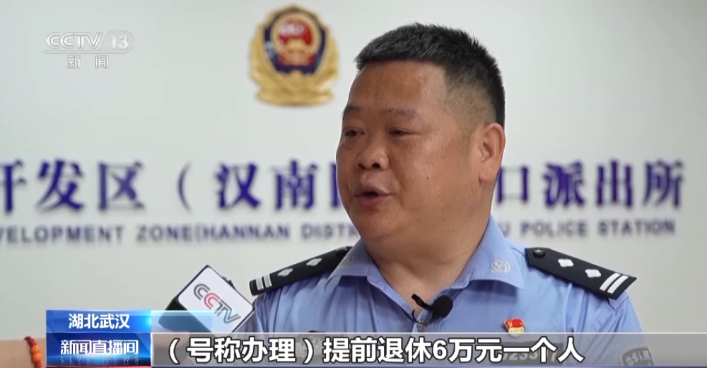 武漢經(jīng)濟技術(shù)開發(fā)區(qū)公安分局沌口派出所民警 溫次文:對方號稱辦理提前退休6萬元一個人,補交醫(yī)保,社保手續(xù)費4萬元一個人,掛靠機關(guān)事業(yè)單位退休3萬元一個人,增加工齡,提高退休待遇4萬元一個人,這4個項目下來估計每個人要交17萬元左右。