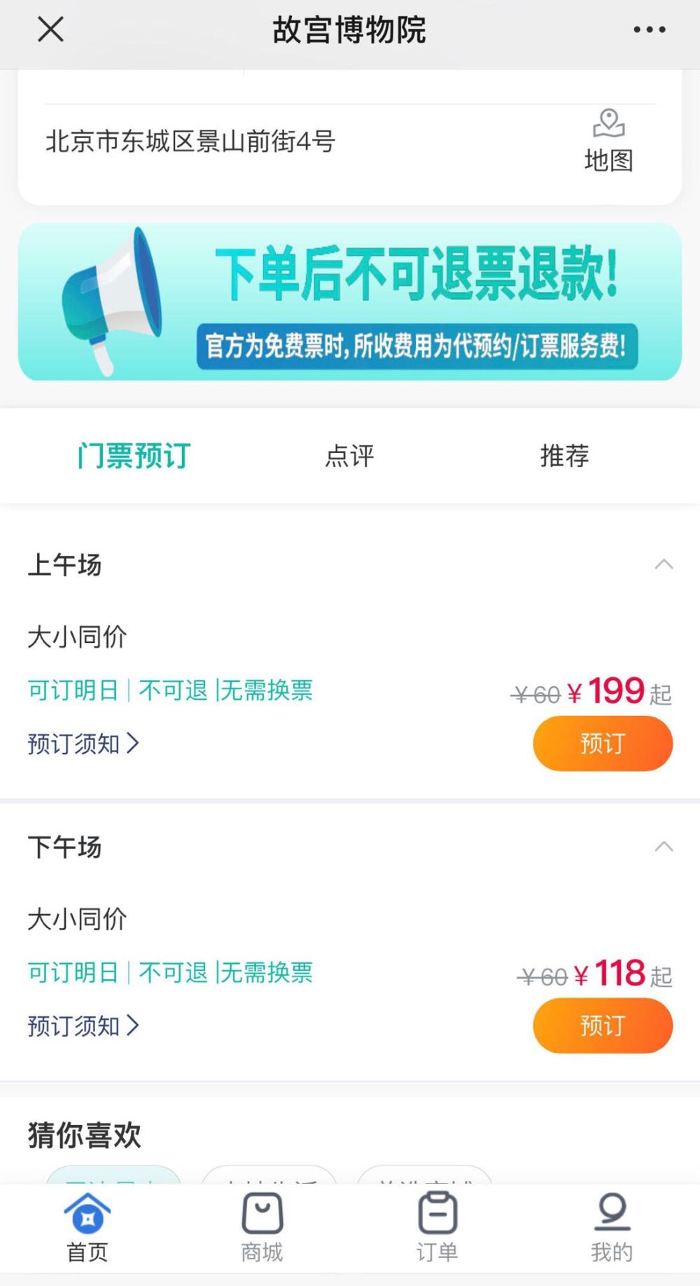 某代搶小程序,下單后不能退票退款,且明確收取的費(fèi)用為服務(wù)費(fèi)。