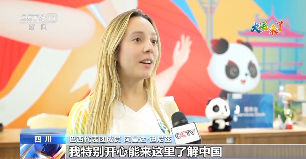 巴西代表團(tuán)成員 阿曼達(dá)·迪尼茲:中國(guó)真是個(gè)漂亮的國(guó)家,我特別開(kāi)心能來(lái)這里了解中國(guó)、感受文化,認(rèn)識(shí)大家。這里的食物很美味,城市也很漂亮。成都讓我印象太深刻了。