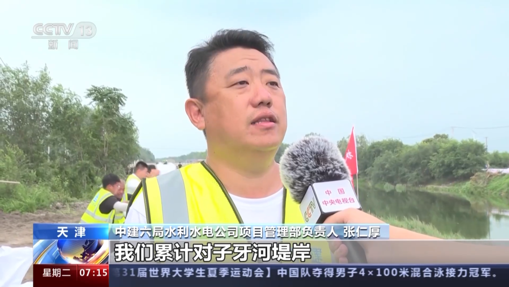 中建六局水利水電公司項(xiàng)目管理部負(fù)責(zé)人 張仁厚:我們累計(jì)對(duì)子牙河堤岸進(jìn)行7.9公里的加高加固。接到緊急施工任務(wù)以后,我們迅速抽調(diào)人員、設(shè)備,將子牙河左岸堤壩由7米加高到8米,此項(xiàng)工作一到兩天內(nèi)施工完成。