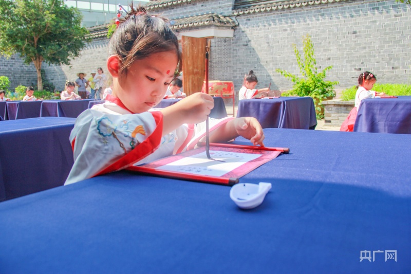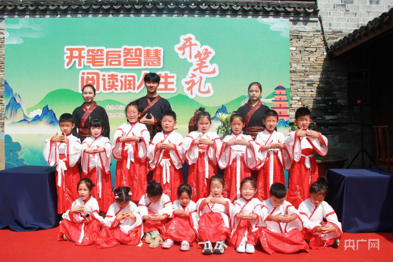 央廣網(wǎng)寧波8月22日消息(記者 張雯雯 通訊員 方舟 安雨晨)樹影婆娑,古韻悠揚,鼓聲清越,翰墨飄香。8月22日,在新學年來臨之際,寧波市江北區(qū)莊橋街道馬徑村文化禮堂舉行了一場別開生面的“開筆啟智慧 閱讀潤人生”開筆禮?;顒釉诿颗e行,20多名即將上小學的小朋友身著漢服,在開筆儀式中感受中國傳統(tǒng)文化的魅力。