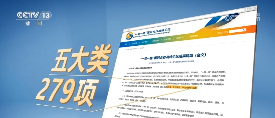 第一屆“一帶一路”國際合作高峰論壇誕生的首張成果清單,涵蓋了五大類的279項具體成果。政策溝通、設(shè)施聯(lián)通、貿(mào)易暢通、資金融通、民心相通成為各國合作的重點。
