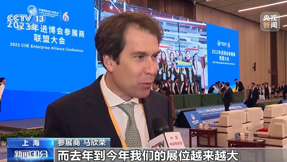 總臺(tái)央視記者 楊曜語:我現(xiàn)在所在的是第六屆進(jìn)博會(huì)參展商聯(lián)盟大會(huì)的現(xiàn)場(chǎng),第六屆進(jìn)博會(huì)時(shí)間還未過半,就有60余家企業(yè)確認(rèn)簽約明年的進(jìn)博會(huì)。