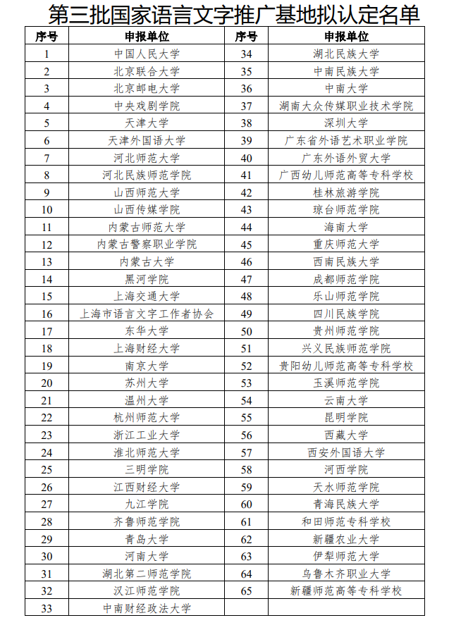 第三批國(guó)家語(yǔ)言文字推廣基地?cái)M認(rèn)定名單公示