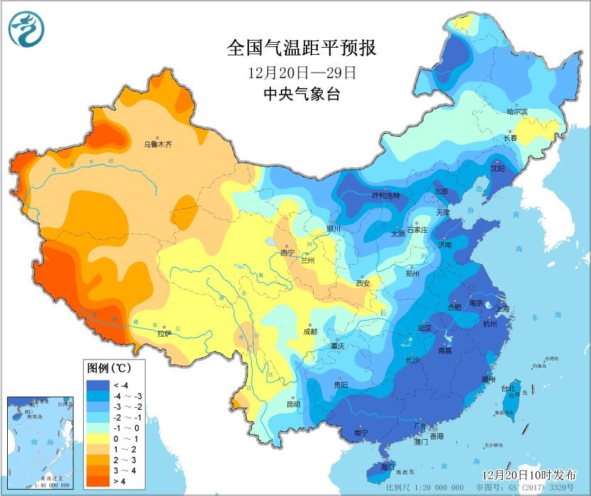 過去10天,受寒潮影響,長(zhǎng)江及其以北地區(qū)氣溫由前期顯著偏高轉(zhuǎn)為偏低1~3℃,其中新疆北部、內(nèi)蒙古東部、東北地區(qū)等地偏低5℃以上;西南地區(qū)、江南南部和華南氣溫偏高1~2℃。