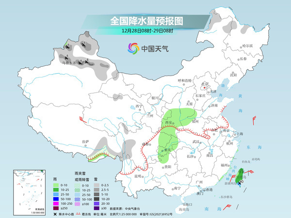 后天,內(nèi)蒙古東北部、黑龍江西北部、新疆北部、西藏東部等地部分地區(qū)有小雪或雨夾雪,其中,新疆北疆北部和沿天山地區(qū)等地部分地區(qū)有中到大雪。西北地區(qū)東部、華北南部、黃淮西部、西南地區(qū)東部、臺(tái)灣島等地部分地區(qū)有小到中雨,其中,臺(tái)灣島等地部分地區(qū)有大雨。