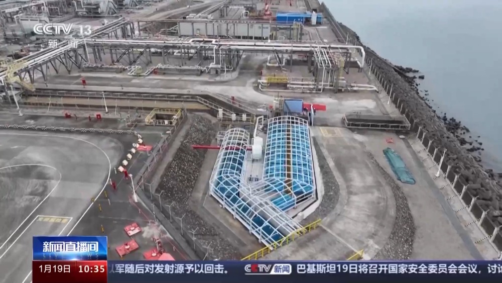 總臺(tái)央視記者 孫薊濰:我現(xiàn)在是在深圳的大鵬灣,身邊的這些藍(lán)色水箱里養(yǎng)殖著龍蝦、鮑魚等各種海鮮,養(yǎng)殖這些海產(chǎn)品的海水是廣東大鵬液化天然氣接收站的生產(chǎn)用水。