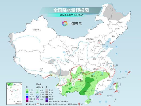 后天,內(nèi)蒙古東北部、黑龍江北部、新疆南疆西部山區(qū)、西藏東部、青海南部、川西高原等地的部分地區(qū)有小雪或雨夾雪。西南地區(qū)東部和南部、江南中西部、華南中西部等地的部分地區(qū)有小到中雨。
