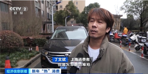 上海消費(fèi)者 丁文斌:臨近春節(jié)準(zhǔn)備回家,但火車票難搶。租了輛7座車,家里的人比較多,走親訪友這樣方便一點(diǎn)。