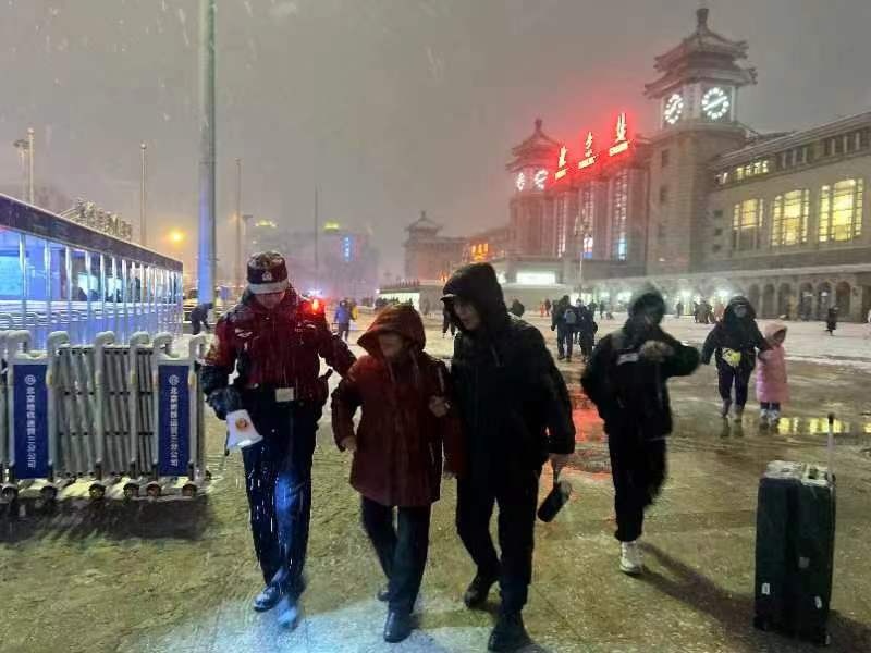 北京鐵路公安處北京站派出所立足春運(yùn)返程,及時(shí)啟動(dòng)雨雪惡劣天氣應(yīng)急預(yù)案(攝 李浩)