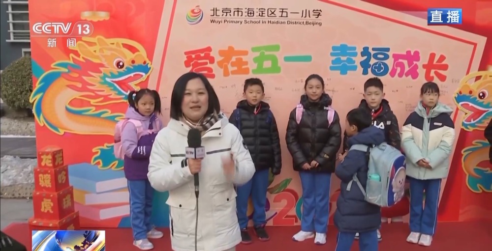總臺央視記者 李晶晶:北京市第八中學(xué)高中部,近2300名高中生齊聚國旗下,舉行新學(xué)期的第一次升旗儀式,在滿滿的儀式感中開啟新的學(xué)習(xí)生活。今年是龍年,有句祝福語叫“龍行龘龘,前程朤朤”,現(xiàn)在正在進(jìn)行的國旗下的演講,題目就是《龘龘朤朤間是向上的力量》,老師祝福學(xué)生們像龍一樣騰飛而上,同時也是鼓勵他們要有夢想,為實現(xiàn)夢想不斷努力向上。