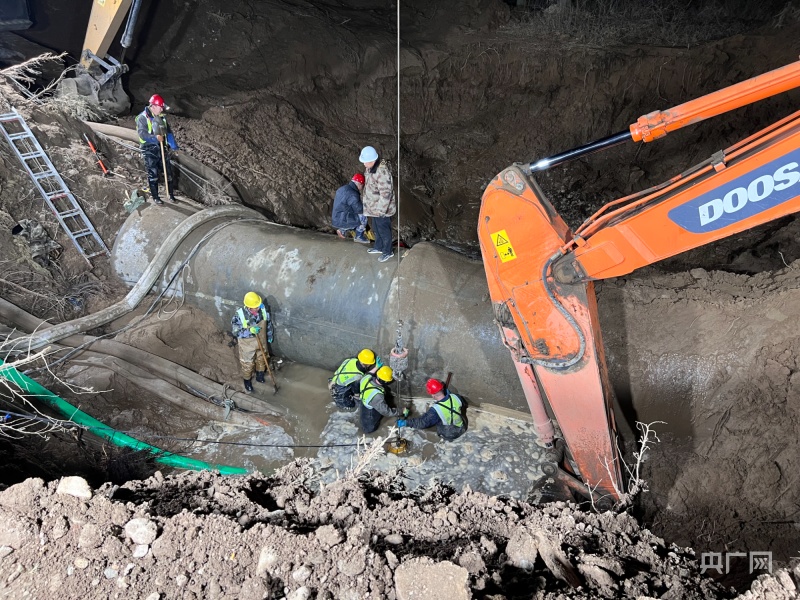 張文偉說:“因?yàn)檫@個管道是個兩米直徑的供水管線,是個主管線,它破裂以后水量特別大。管線是在耕地上,維修車輛是進(jìn)不去的。維修首先得修筑施工通道,所有車輛人員靠近不了,然后關(guān)閘停水,走施工通道過去以后,進(jìn)行原有管道抽排,管道里都是滿水,必須把水排干凈才能搶修,才能發(fā)現(xiàn)它是哪兒壞了,我們采取哪種方式來進(jìn)行搶修。搶修方案有很多種,我們也提前都有預(yù)案。所以抽水時(shí)間很長,上游就有7萬多立方的水,抽排就是一個很大的難點(diǎn)?!?/p>