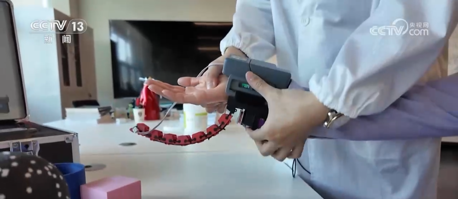 用意念控制動(dòng)作,這樣的場(chǎng)景不只存在于科幻電影里。眼下,“手隨心動(dòng)”已經(jīng)走進(jìn)現(xiàn)實(shí),這一切都是靠著腦機(jī)接口技術(shù),而這樣技術(shù)的奧秘就藏在這所高校的實(shí)驗(yàn)室里。走進(jìn)教學(xué)樓,記者注意到,這里有十幾個(gè)與腦機(jī)接口相關(guān)的團(tuán)隊(duì)正在進(jìn)行研究,這間實(shí)驗(yàn)室里就正在測(cè)試最新研發(fā)的“靈犀指”。記者戴上腦機(jī)帽,電腦就可以實(shí)時(shí)監(jiān)測(cè)她的腦電波,已經(jīng)裝上機(jī)械手,試一下可以用意念能不能控制這第六根機(jī)械手指?,F(xiàn)在想用“手指”去抓握這個(gè)球,好像不是很好控制。
