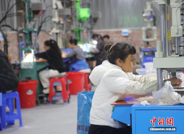 中新網(wǎng)永州4月1日電(蔣軍君 蔣若冰 周林鳳)走進(jìn)湖南新田縣各鄉(xiāng)鎮(zhèn)的“村企”生產(chǎn)車間,村民們正加緊趕制訂單,一派繁忙景象。打理完家務(wù)、照料好老人孩子后,村民蔣小燕來到新田縣大坪塘鎮(zhèn)火柴嶺村的梓辰電子廠上班。