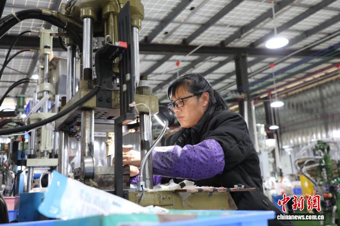 工人正在車間操作機(jī)器趕制訂單。蔣軍君 攝
