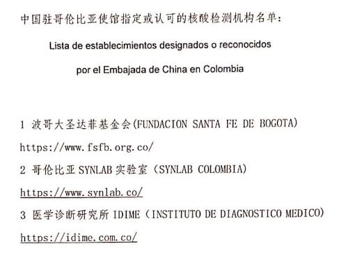 駐哥倫比亞使館提醒經(jīng)有關(guān)國(guó)家赴華乘客做好核酸檢測(cè)