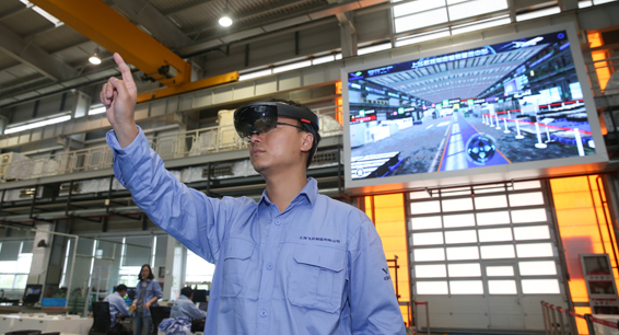 中國商飛公司總裝制造中心智慧數(shù)控車間主要承擔(dān)飛機零部件的研制、生產(chǎn)工作,其產(chǎn)品用于C919大型客機、ARJ21新支線客機。圖為工作人員在中國商飛公司總裝制造中心智慧數(shù)控車間使用AR眼鏡操控虛擬電子屏幕。新華社記者 丁汀 攝