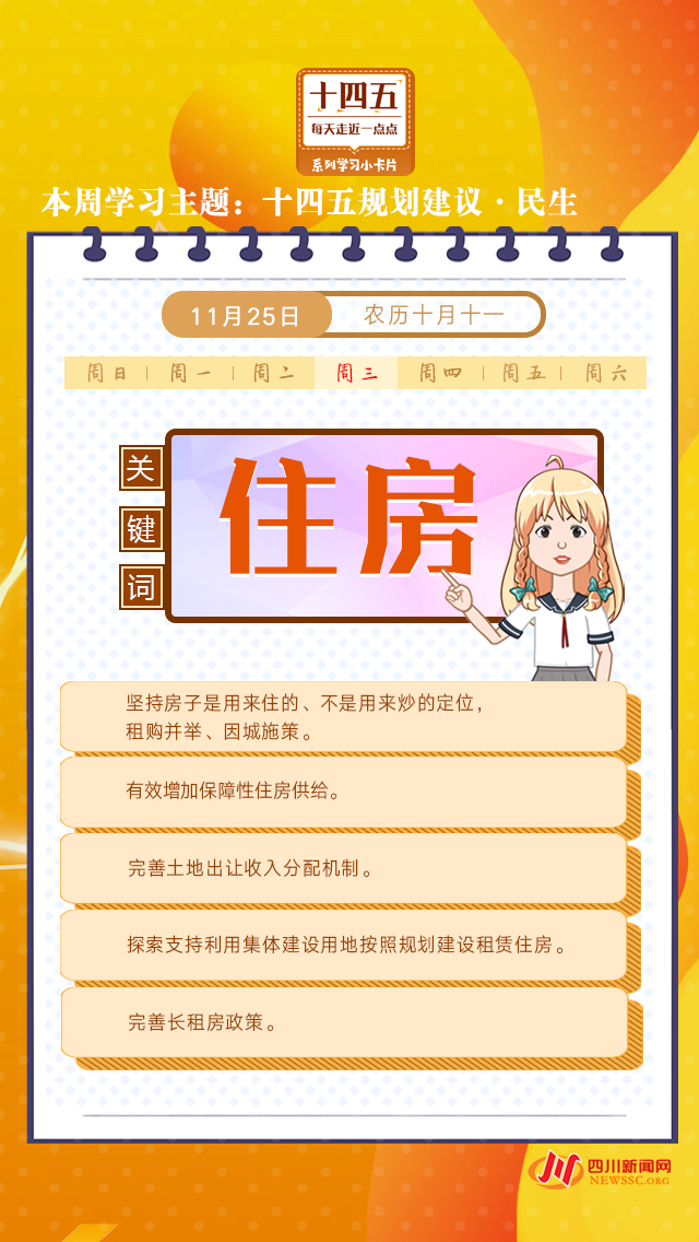 本周學(xué)習(xí)主題“十四五規(guī)劃建議·民生”系列,一張張學(xué)習(xí)卡帶你了解就業(yè)、收入、住房……那些與你息息相關(guān)的民生舉措!今天打卡學(xué)習(xí)“十四五”規(guī)劃建議中有關(guān)住房的舉措。