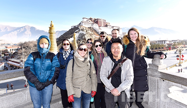 新年第一天,記者在西藏自治區(qū)拉薩市藥王山觀景臺(tái)遇見了來自美國的游客Lauren和她的團(tuán)友們。這是一個(gè)由8名游客組成的外賓團(tuán),他們分別來自美國、哥倫比亞等7個(gè)國家。