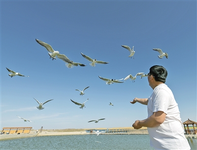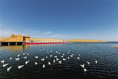 “湖濱密生蘆葦,入秋蘆花飛舞,宛若柳絮?!Z翔天際,鴨浮綠波,碧水青天,馬嘶雁鳴……”居延海曾經失去過這樣的神韻風姿。 近年來,隨著保護力度的加大與生態(tài)環(huán)境逐漸恢復,湖中生機再現,樹木起死回生,水鳥凌空飛翔,這顆大漠深處的藍色明珠再一次熠熠生輝?。ㄓ浾?懷特烏勒斯 攝影報道)