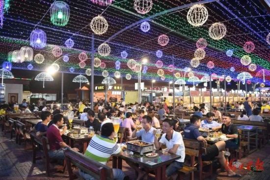 遍布??诔菂^(qū)的16家規(guī)模夜市,如一顆顆閃亮的明珠,刺激著市民游客的味蕾,也喚醒著這座國(guó)際化濱江濱?;▓@城市愜意的夜生活。