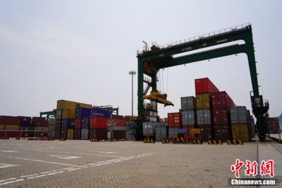 天津港太平洋國(guó)際集裝箱碼頭,繁忙的作業(yè)區(qū)。記者 劉湃 攝