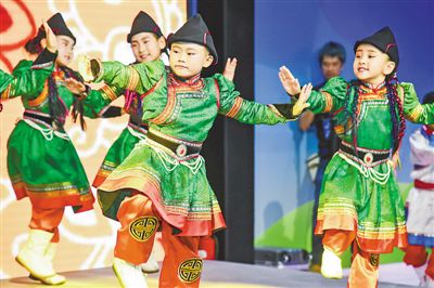 6月23日,“友誼·和平·年輕的使者”中俄蒙青少年內(nèi)蒙古旅游夏令營在內(nèi)蒙古自治區(qū)烏蘭察布市開營,來自中俄蒙三國200余名“小使者”共同開啟夢幻般的草原之旅。開營儀式現(xiàn)場,來自中國、俄羅斯和蒙古國的孩子們帶來了芭蕾舞、蒙古舞、布里亞特民族舞等精彩演出,贏得現(xiàn)場陣陣掌聲。圖為來自中國的小朋友表演民族舞蹈。