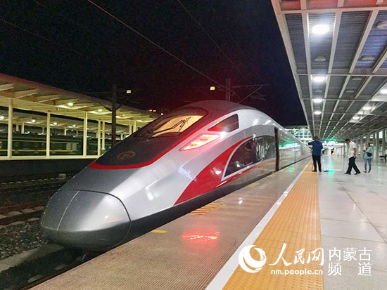 人民網(wǎng)呼和浩特6月19日電 6月18日22時10分,由CR400AF-2017動車組擔(dān)當(dāng)?shù)?D1604/1次列車從呼和浩特東動車所駛出,計劃對張呼高鐵進(jìn)行兼容性試驗,這也是復(fù)興號動車組列車首次“探訪”草原高鐵。
