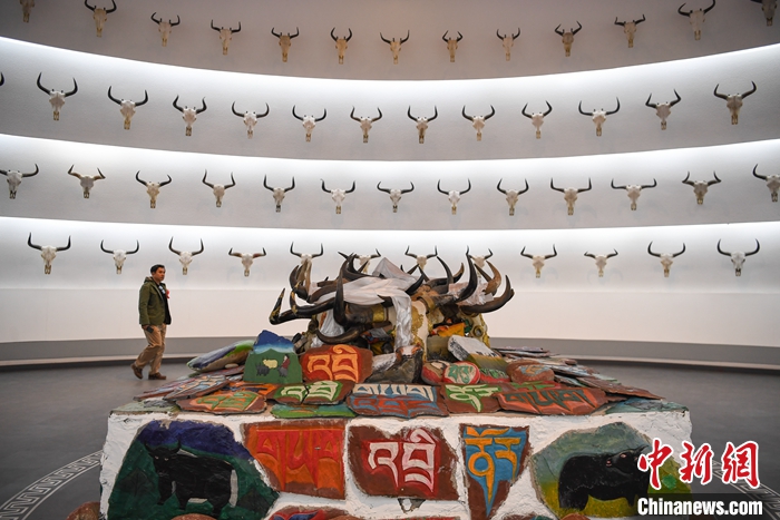 圖為西藏牦牛博物館感恩展廳內(nèi),墻上懸掛的牦牛頭骨。 中新社記者 貢嘎來松 攝