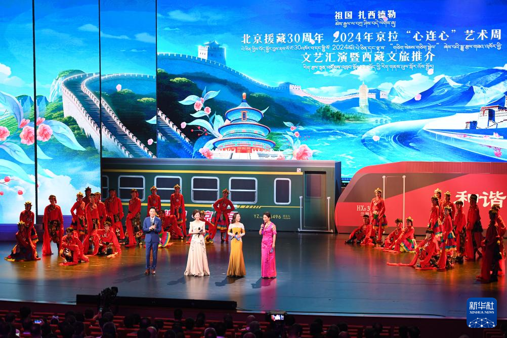 當日,“北京援藏30周年·2024年京拉‘心連心’藝術(shù)周文藝匯演活動”在北京藝術(shù)中心歌劇院上演。2024年是北京對口援藏30周年,演出展現(xiàn)北京援藏在民族交流交往交融、服務保障民生、推動拉薩市經(jīng)濟社會發(fā)展等方面付出的努力和取得的成績。同時,本場演出也對西藏文旅進行推介。