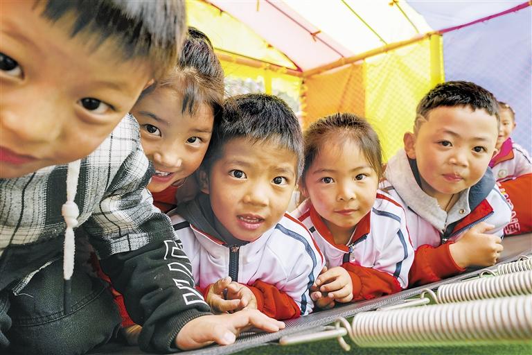 圖為昌都市邊壩縣第一小學(xué)的孩子們?cè)谡n間快樂地玩耍。本報(bào)記者 丹增群培 攝