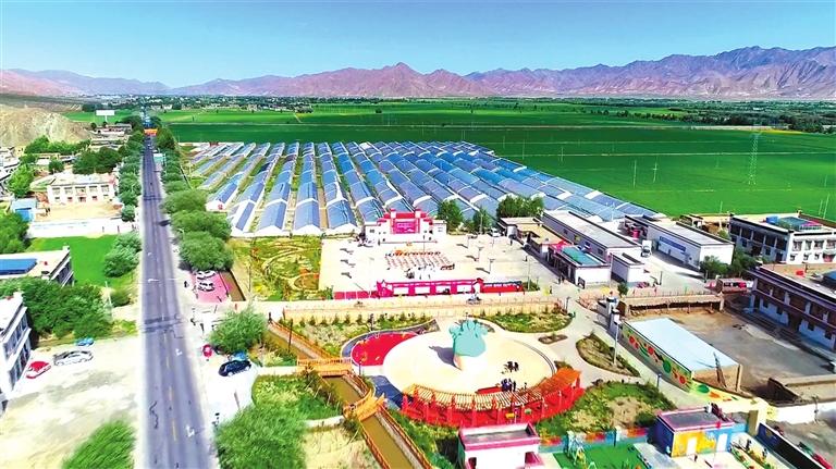 由山東援藏打造的桑珠孜區(qū)青稞小鎮(zhèn)全景。