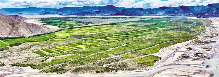 8月23日,日喀則市南木林縣“雅江北岸生態(tài)示范區(qū)”3.6萬畝生態(tài)防護(hù)林郁郁蔥蔥。經(jīng)濟(jì)日報記者 袁勇 攝