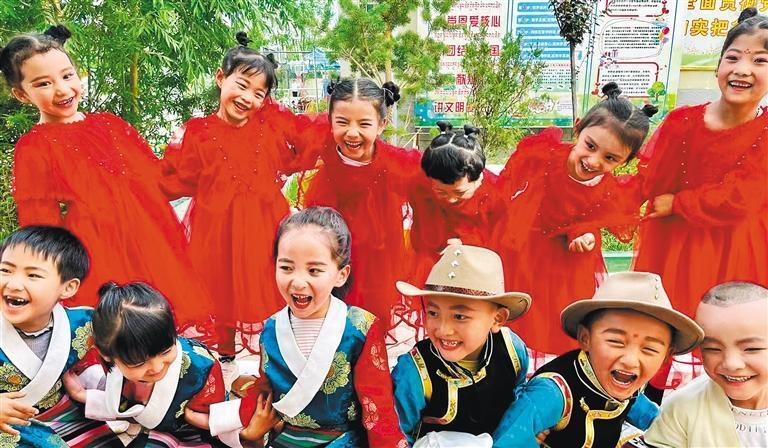 2022年6月1日,孩子們在山東援建的日喀則市齊魯幼兒園歡度兒童節(jié)。經(jīng)濟(jì)日報記者 袁勇 攝