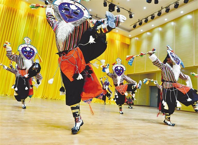 9月13日,日喀則市昂仁縣民間藝術(shù)團(tuán)演員在淄博援建的迥巴藏戲國家級非物質(zhì)文化遺產(chǎn)保護(hù)中心演出。經(jīng)濟(jì)日報記者 袁勇 攝