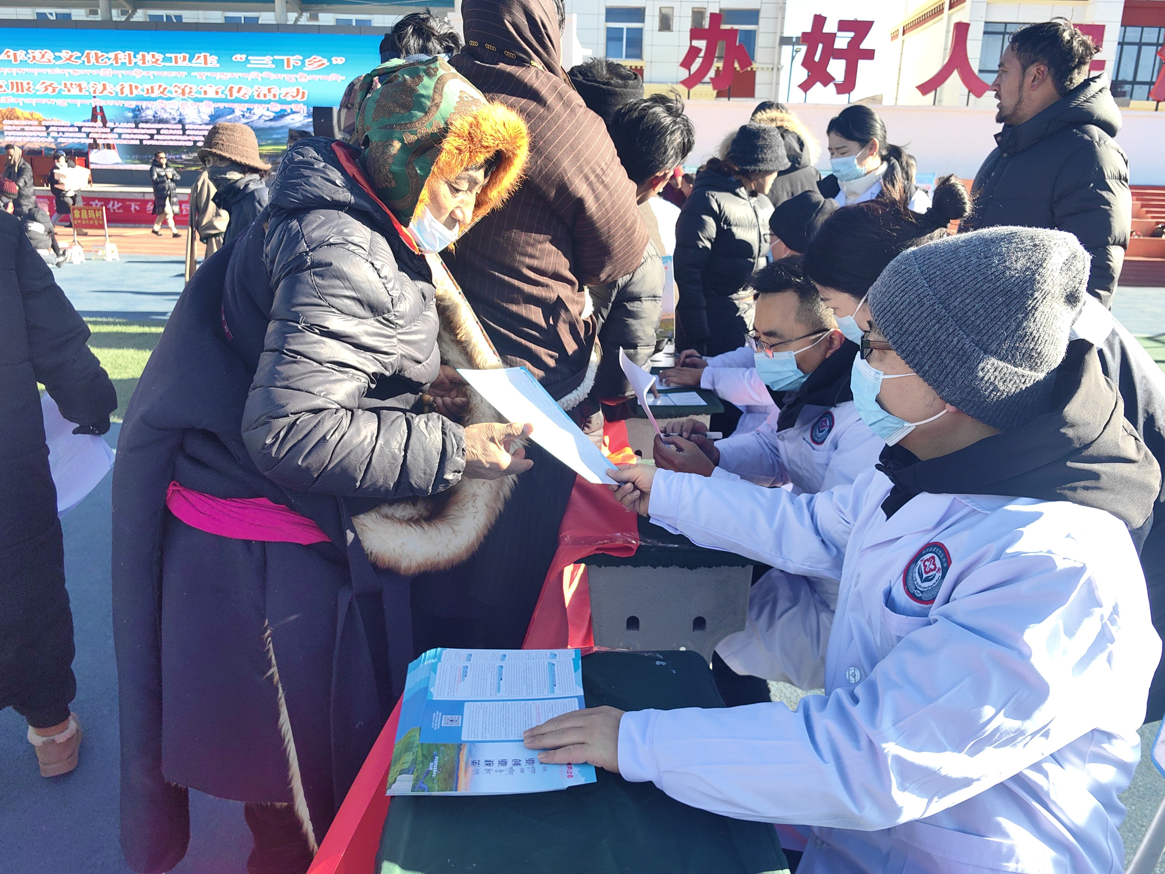 賈洛鎮(zhèn)平均海拔3500米以上,目前最低氣溫達-17℃,氣候干燥、含氧量極少。在義診活動中,醫(yī)療專家們不畏高寒和缺氧,為群眾提供了專業(yè)細致的診療服務(wù),開展血壓、血糖檢測、心肺聽診等常規(guī)檢查。對于一些疑難重癥患者,醫(yī)療團隊還進行了詳細的會診,提出了治療方案和手術(shù)預(yù)約建議。同時,醫(yī)療專家們還針對藏區(qū)常見的疾病,如高原病、呼吸系統(tǒng)疾病等,進行重點講解和防治指導(dǎo),幫助他們更好地了解疾病預(yù)防和健康保健知識。據(jù)統(tǒng)計,此次義診活動共接診患者300余人,免費提供價值2萬元的藥品,并發(fā)放健康宣傳資料300余份。